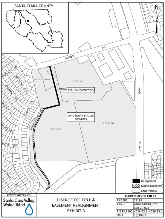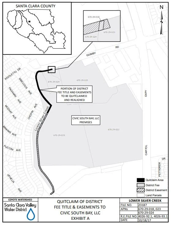 Exhibit created for a quitclaim document showing the revised location of Valley Water's easement.